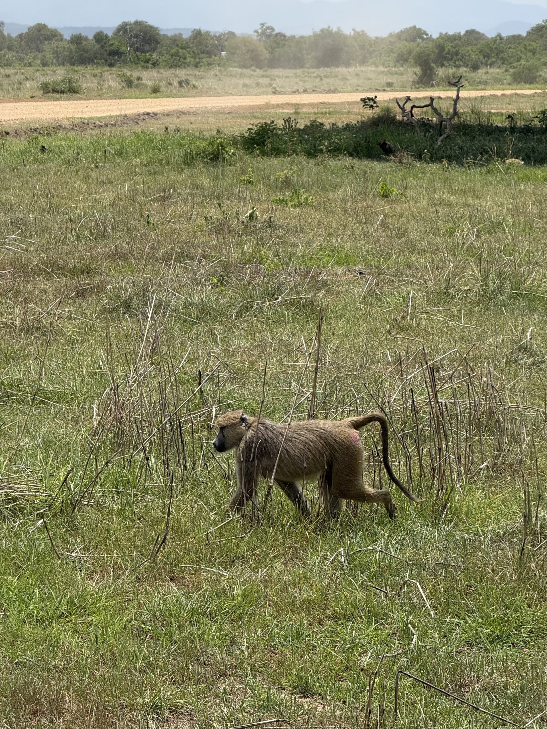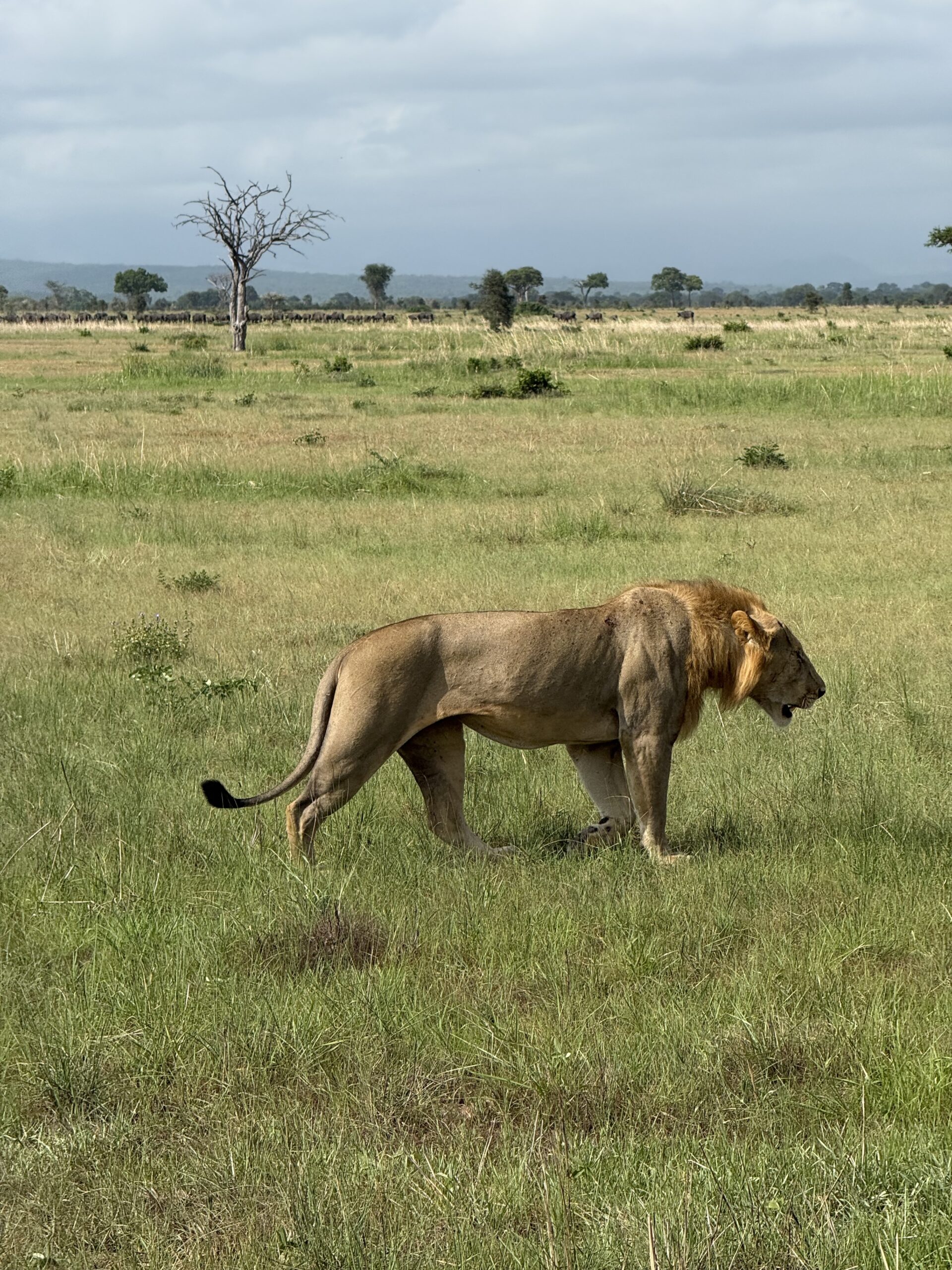 Потеглихме по една пътека, но в този момент там пресичаха стадо биволи. Африканският бивол е огромен и изключително силен и агресивен, движи се в големи стада и това го прави трудна плячка за хищниците. В нашия случай имаше биволи докъдето поглед стига, нямаше как да изчакаме всички да пресекат, нито пък да ги заобиколим, затова поехме по друга пътека. Пресрещнахме и малко стадо брадавичести прасета – африканските глигани, станали по-известни сред хората просто като Пумба 🙂
