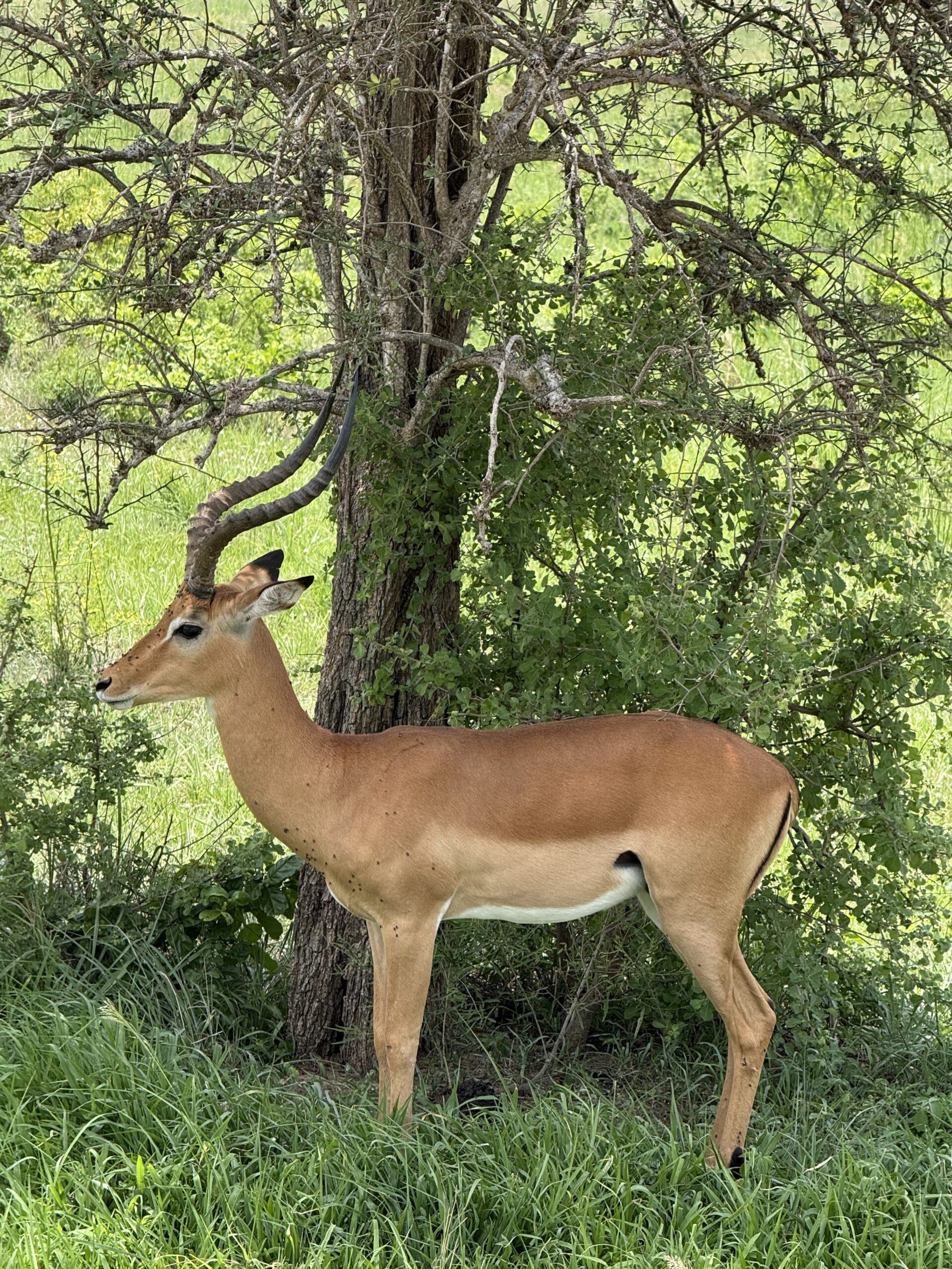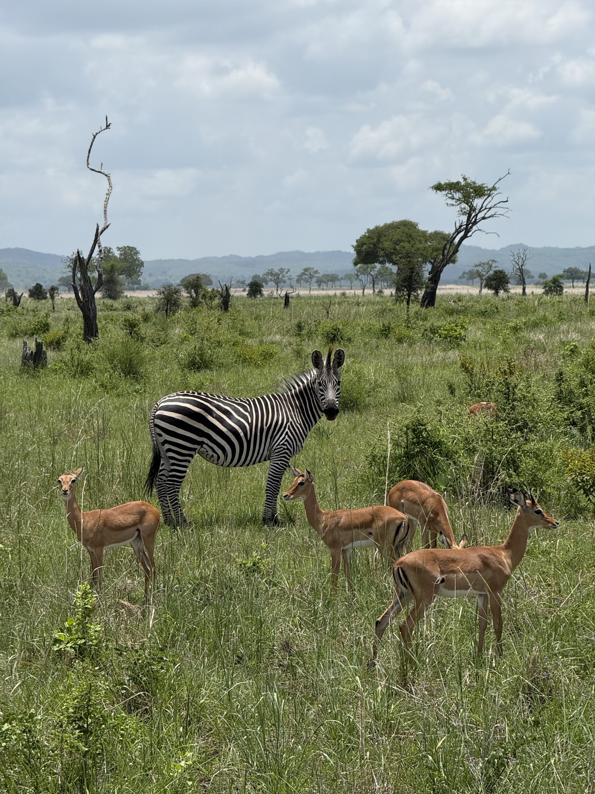 Освежени и отпочинали, се натоварихме отново в джипа – оставаха ни около час-два за обиколка преди полета ни на връщане. Гидът ни даде всичко от себе си да открие леопард – обикаляхме из горички, а той преглеждаше клоните на самотни дървета с бинокъл. Леопардите, също като лъвовете, са почти неоткриваеми денем – често спят някъде по високите клони, а в саваната дърветата са безброй. Въпреки че нямахме късмет да зърнем леопард, денят приключи по най-прекрасния начин. Докато се взирахме в клоните на поредното дърво, рязко заваля силен тропически дъжд. Изведнъж във въздуха вече се усещаше само мириса на мокра пръст и трева, саваната утихна и чувахме единствено ромоленето на тежките капки, а цветовете сякаш станаха по-ярки. Беше магичен финал на един невероятен, излязъл право от мечтите ми ден.