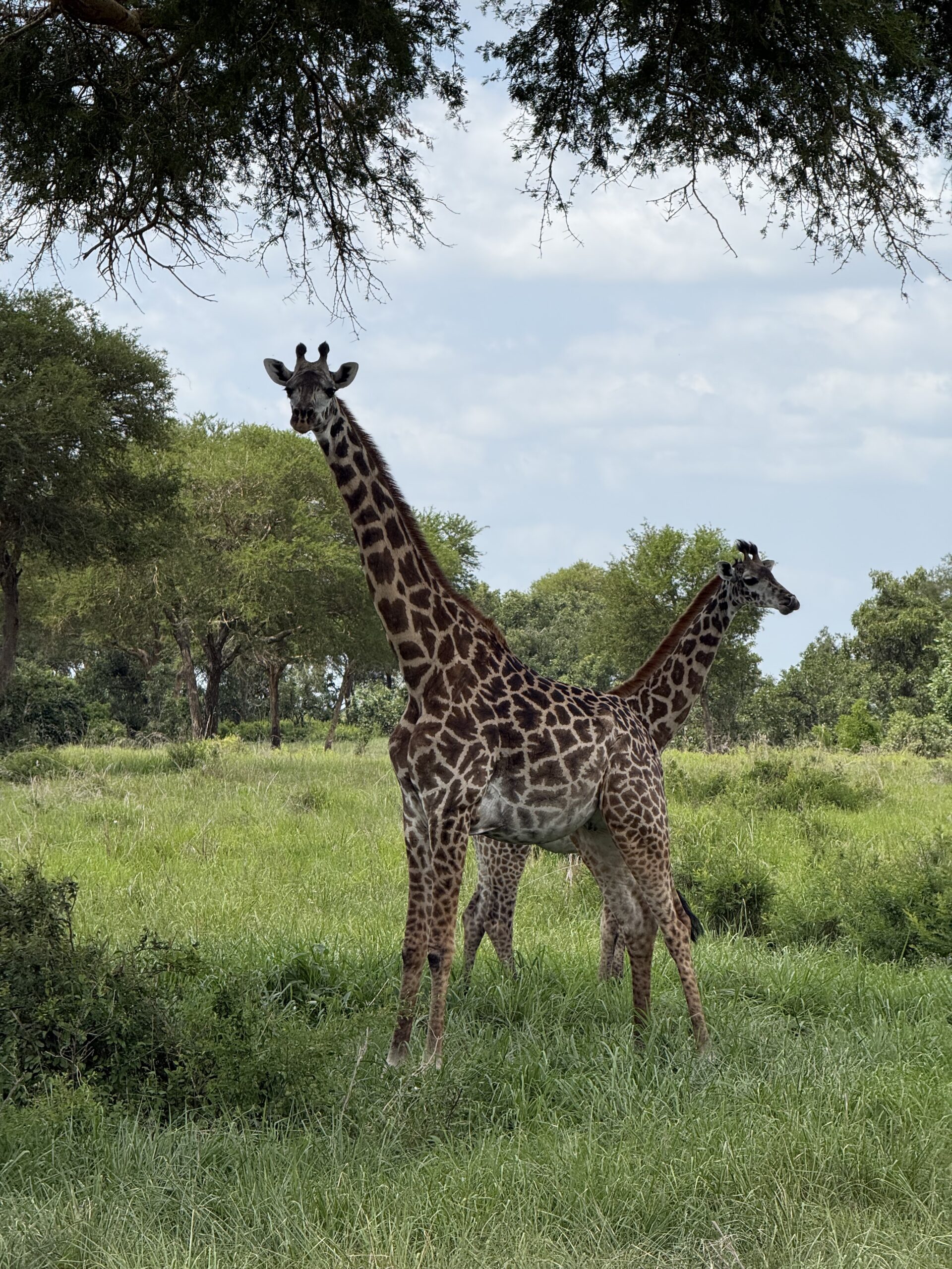 Следващата вълнуваща среща не закъсня. В началото на деня ни бяха обещани жирафи и жирафи получихме. Натъкнахме се на едно стадо, пасящи из високата растителност. Жирафите са доста по-бързи и плашливи от слоновете и нямахме възможността да ги доближим толкова много, но въпреки това успяхме да им се порадваме. В комплект с тях обикновено се движат зебри и импали. Тъй като жирафите са високи и виждат надалеч, те успяват много по-рано да забележат опасностите, като лъвове и леопарди. Останалите тревопасни се навъртат около тях и ги използват като система за ранно предупреждение. Ако жирафът бяга, вероятно се задава хищник 🙂 Жирафите в парк Микуми са специална кръстоска и местните ги наричат „масайски жирафи“ заради формата на петната им, която наподобява традиционното облекло на местното племе масаи.